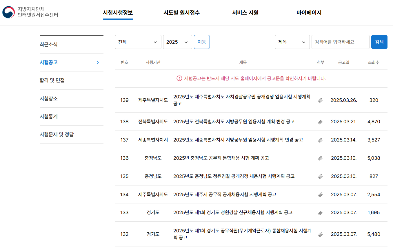 접수 사이트: 지방자치단체 인터넷 원서 접수 센터 (http://local.gosi.go.kr)