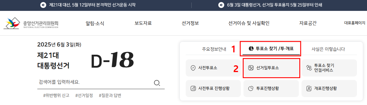 3. 가까운 사전투표소 정보 확인(2025. 5. 24 (토) 부터 공개예정)